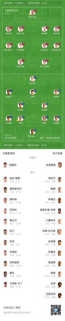 10月1日讯 北京时间10月01日星期三03:00,欧冠联赛阶段第2轮,马德里竞技主场对阵法兰克福。目前双方公布了本场比赛的首发阵容。马竞首发方面,格列兹曼搭档阿尔瓦雷斯,小西蒙尼首发;法兰克福方面,堂安律出战!
